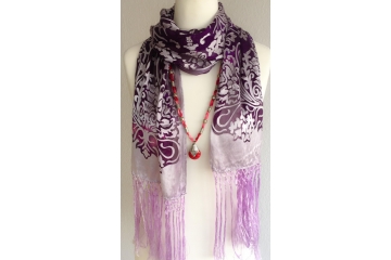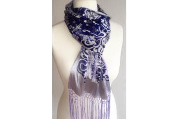 Rita's Purple Tie DyeDevore Silk Scarf with Fringe
