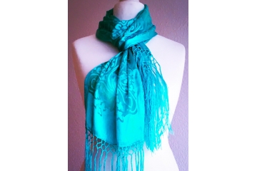 Τurquoise Tie DyeDevore Silk Scarf with Fringe