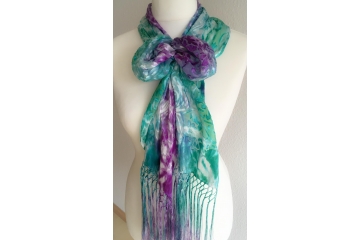 PurpleGreen Tie DyeDevore Silk Scarf with Fringe