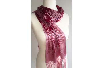 Deep Red Tie DyeDevore Silk Scarf with Fringe